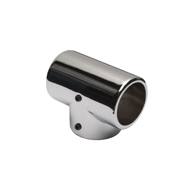 Złącze typu T, łącznik trzykierunkowy z imbusem zaciskowym służy do łączenia rur fi 25mm pod kątem 90 st. Wykończenie w chromie.