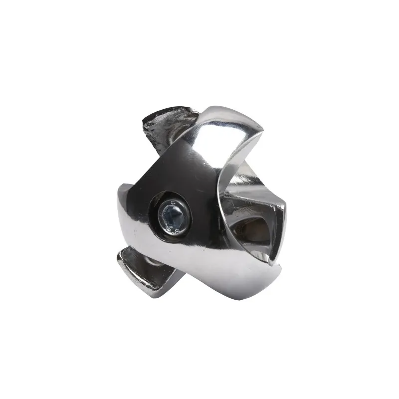 Złącze kuliste, łącznik trzykierunkowy, lewy, z imbusem zaciskowym służy do łączenia rur fi 25mm pod kątem 90 st. Powłoka chromowana.