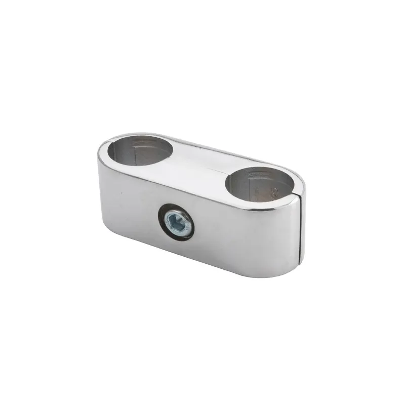Złącze podwójne równoległe, z imbusem zaciskowym służy do łączenia rur fi 25mm równolegle. Powłoka chromowana.