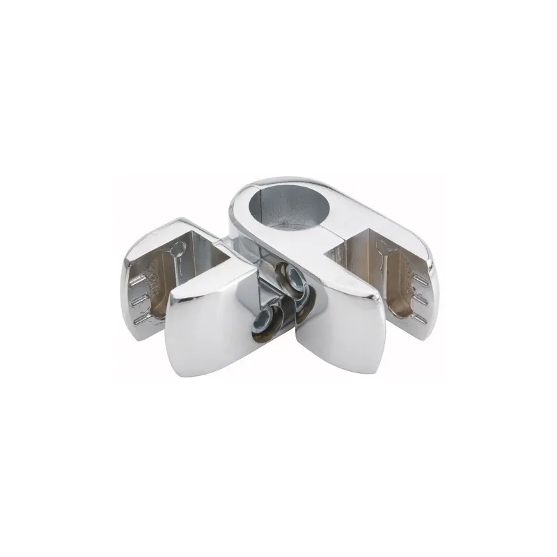 Złącze do płyty szkła, kątowe, ruchome, z imbusem zaciskowym służy do łączenia rur fi 25mm ze szkłem lub płytą meblową. Powłoka chromowana.