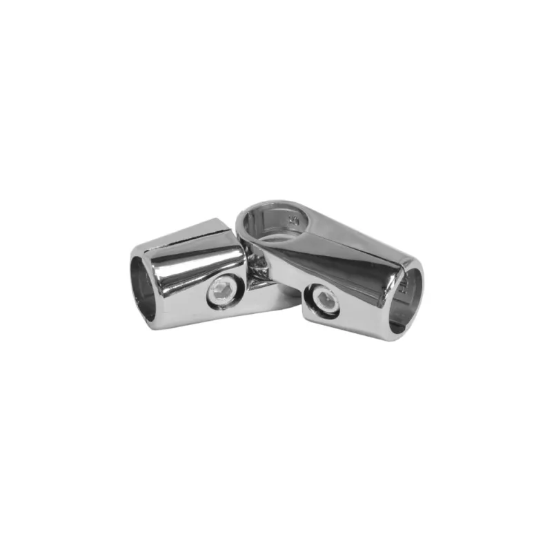 Złącze dwuramienne, z imbusem zaciskowym służy do łączenia rur fi 25mm pod dowolnym kątem. Powłoka chromowana.