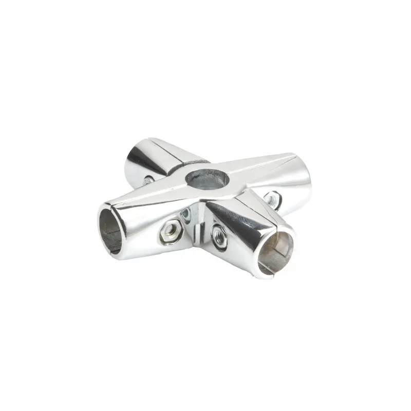 Złącze czteroramienne, z imbusem zaciskowym służy do łączenia rur fi 25mm pod kątem 90 st. Powłoka chromowana.