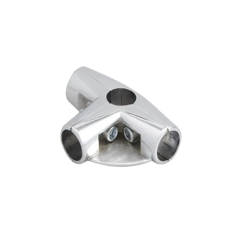 Złącze trzyramienne z półką, z imbusem zaciskowym służy do łączenia rur fi 25mm pod kątem 90 st. Powłoka chromowana.