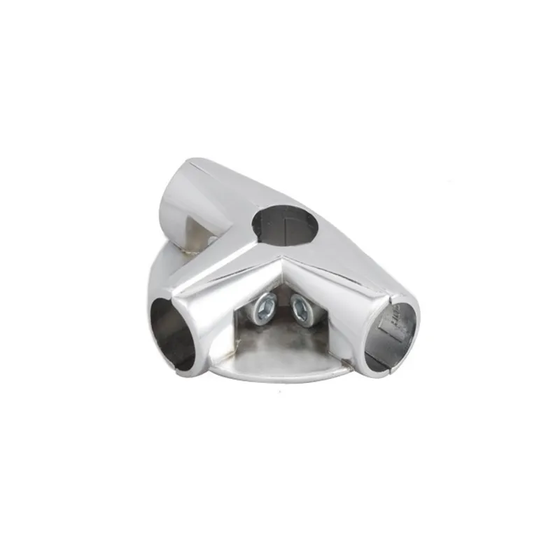 Złącze trzyramienne z dwoma półkami, z imbusem zaciskowym służy do łączenia rur fi 25mm pod kątem 90 st. Powłoka chromowana.