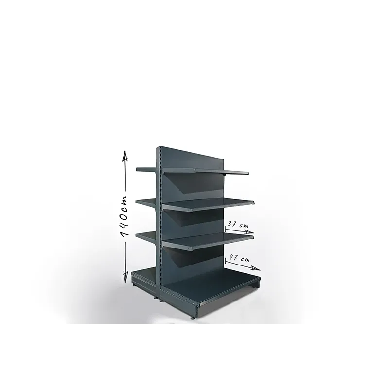 Gondola, regał dwustronny sklepowy o wysokości 140cm.