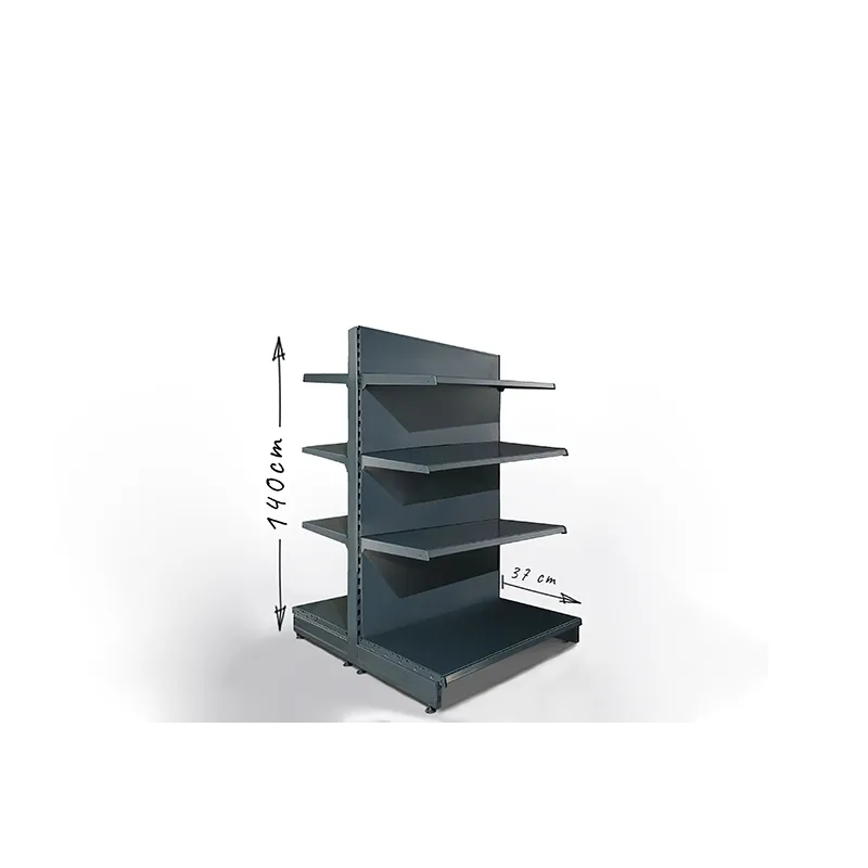 Gondola, regał dwustronny sklepowy o wysokości 140cm.