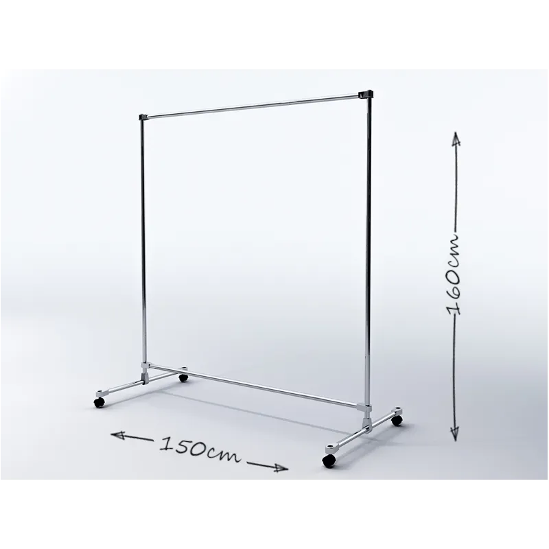 Transporter pojedynczy, jeżdżący, wykonany z rury stalowej, chromowanej o średnicy 25mm, elementów łączących chromowanych i czarnych kółek z tworzywa. W zestawie klucz imbusowy i instrukcja montażu. Gondola przeznaczona do samodzielnego złożenia. Dolny drążek posiada regulację poziomu.
