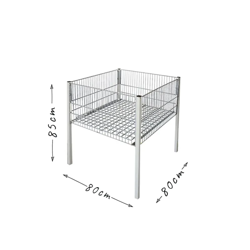 Stojak używany jest do ekspozycji produktów w promocji, organizowania ekspozycji na środku sklepu, w ciągach komunikacyjnych. Kosz sprawdza się w sprzedaży produktów tekstylnych, zabawek, odzieży.