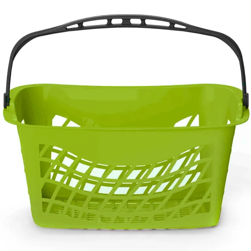 na logo. Koszyk posiada jedną składaną czarną rączkę.