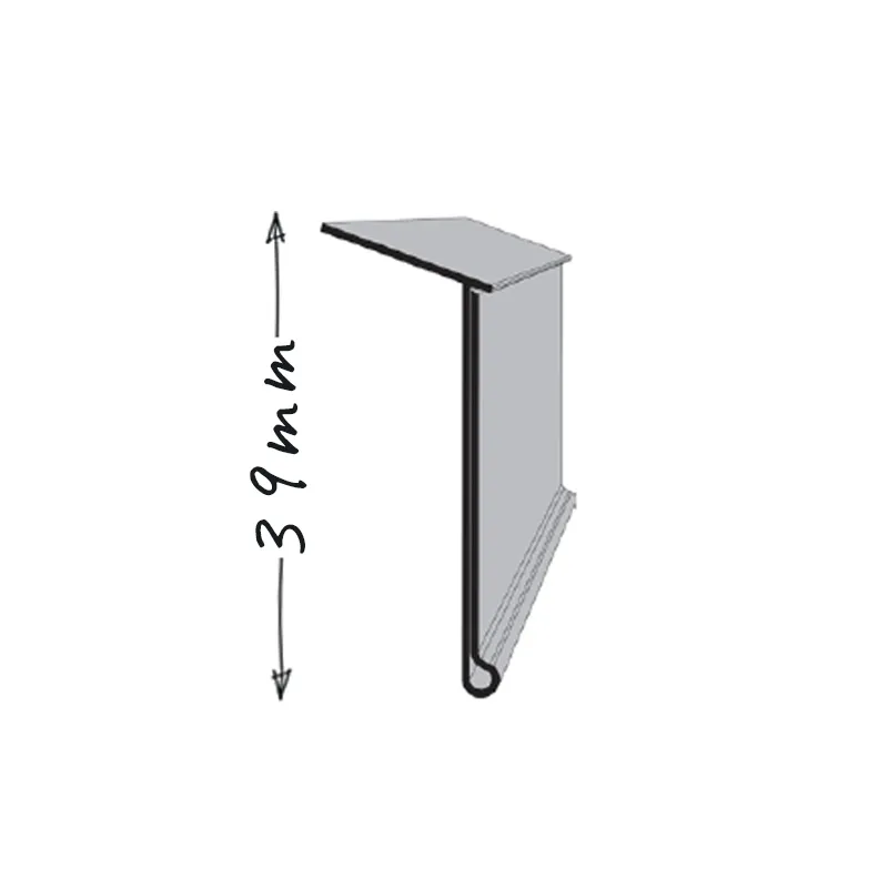 Listwa cenowa HE ma 39mm wysokości i zazwyczaj jest naklejana na górę półki. Przednia osłonka jest zawsze bezbarwna. Osłonka utrzymuje cenówkę w listwie i chroni ją przed kurzem i zabrudzeniami.