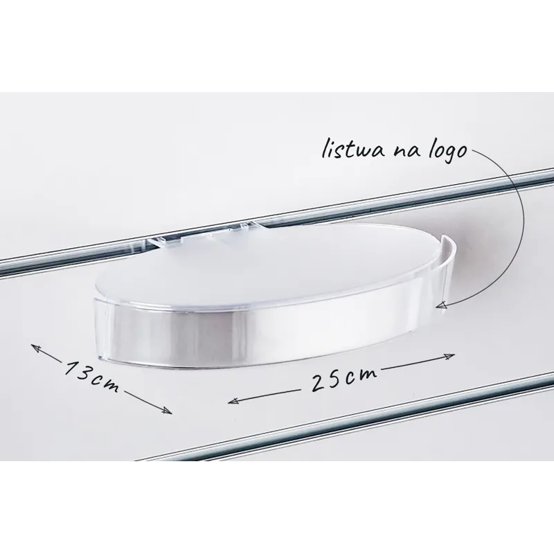Półka owalna Slatwall 25x13 matowa, listwa z logo