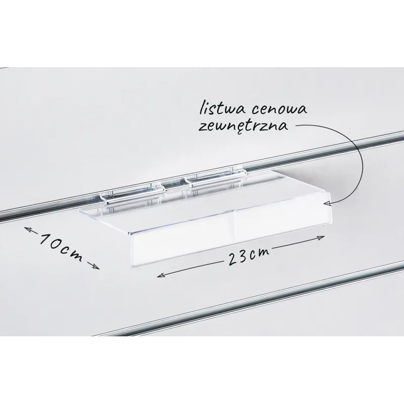 i głębokości 10cm z zewnętrzną listwą cenową. Listwa cenowa umożliwia