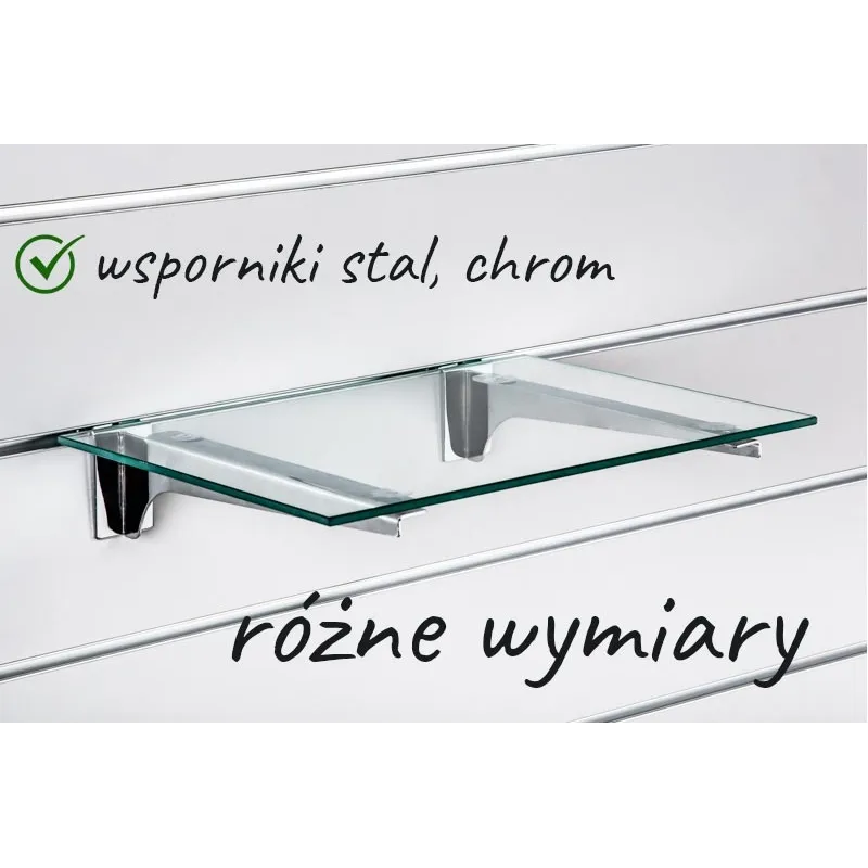 60x30cm, 80x20cm, 80x30cm, 100x20cm, 100x30cm. Półka nie zsuwa się ze