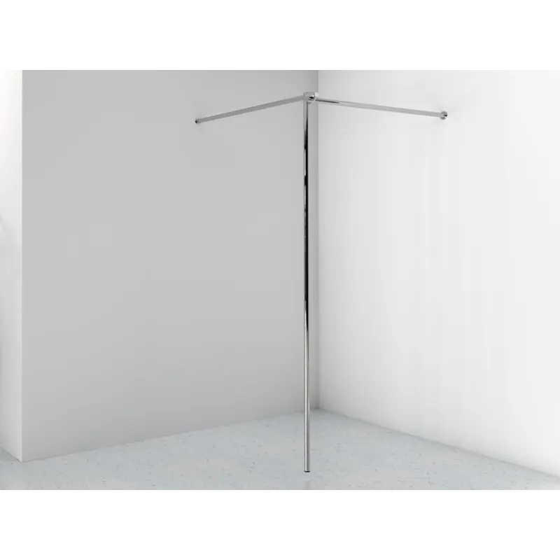 Przymierzalnia narożna, pojedyncza wykonana z rury stalowej, chromowanej o średnicy 25mm, elementów łączących chromowanych i czarnych stopek z tworzywa. W zestawie klucz imbusowy i instrukcja montażu. Przymierzalnia przeznaczona do samodzielnego złożenia.
