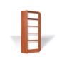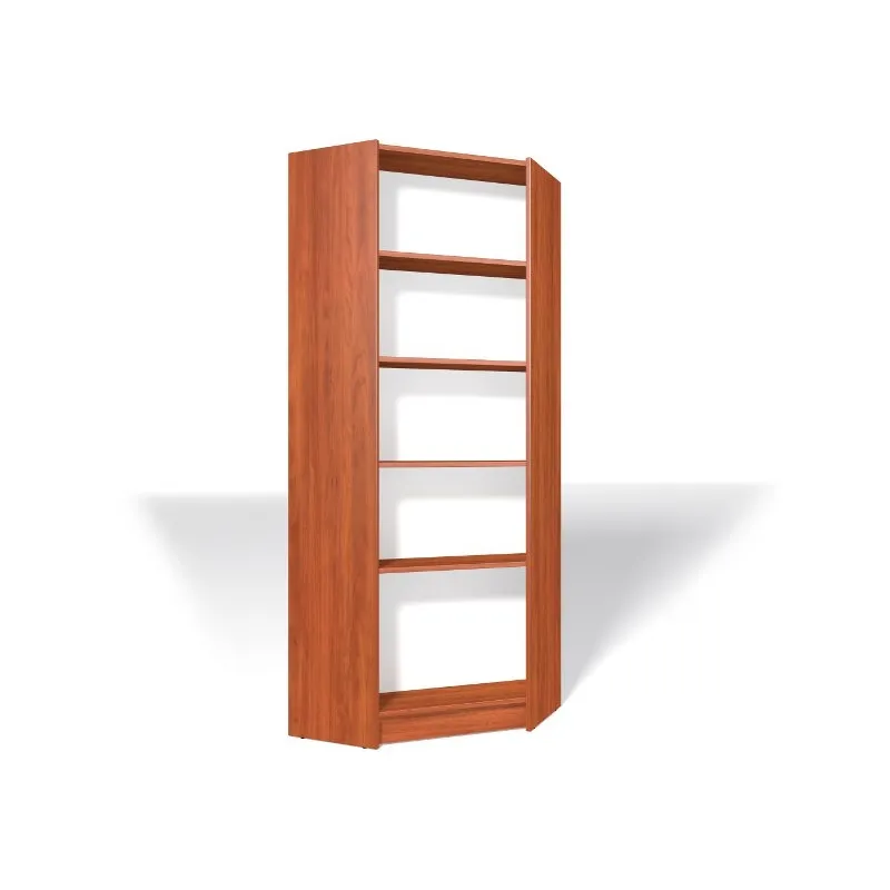 Regał sklepowy przeznaczony do ekspozycji i magazynowania towaru. Regał narożny, wykonany z płyty meblowej, dwustronnie laminowanej i białej płyty HDF. Regał narożny, posiada cztery półki, z czego trzy mają regulację poziomu.