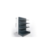 Regał wykonany jest w całości z elementów metalowych, malowanych proszkowo. Nogi perforowane umożliwiają zmianę poziomu/wysokości półki co 5cm. Na nogach zawieszone są plecy pełne, dzielone na segmenty. Półki posiadają wzmocnienia zapewniające stabilność i wysoki udźwig regału. Dodatkowo zaczepy półki pozwalają na montaż półek w dwóch płaszczyznach: poziomej i pochyłej.