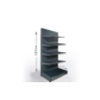 Regał wykonany jest w całości z elementów metalowych, malowanych proszkowo. Nogi perforowane umożliwiają zmianę poziomu/wysokości półki co 5cm. Na nogach zawieszone są plecy pełne, dzielone na segmenty. Półki posiadają wzmocnienia zapewniające stabilność i wysoki udźwig regału. Dodatkowo zaczepy półki pozwalają na montaż półek w dwóch płaszczyznach: poziomej i pochyłej.