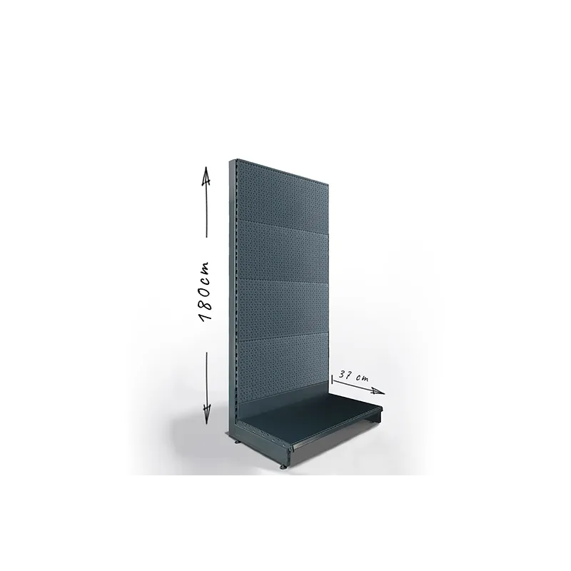 Regał jednostronny, sklepowy, z perforacją, o wysokości 180cm.