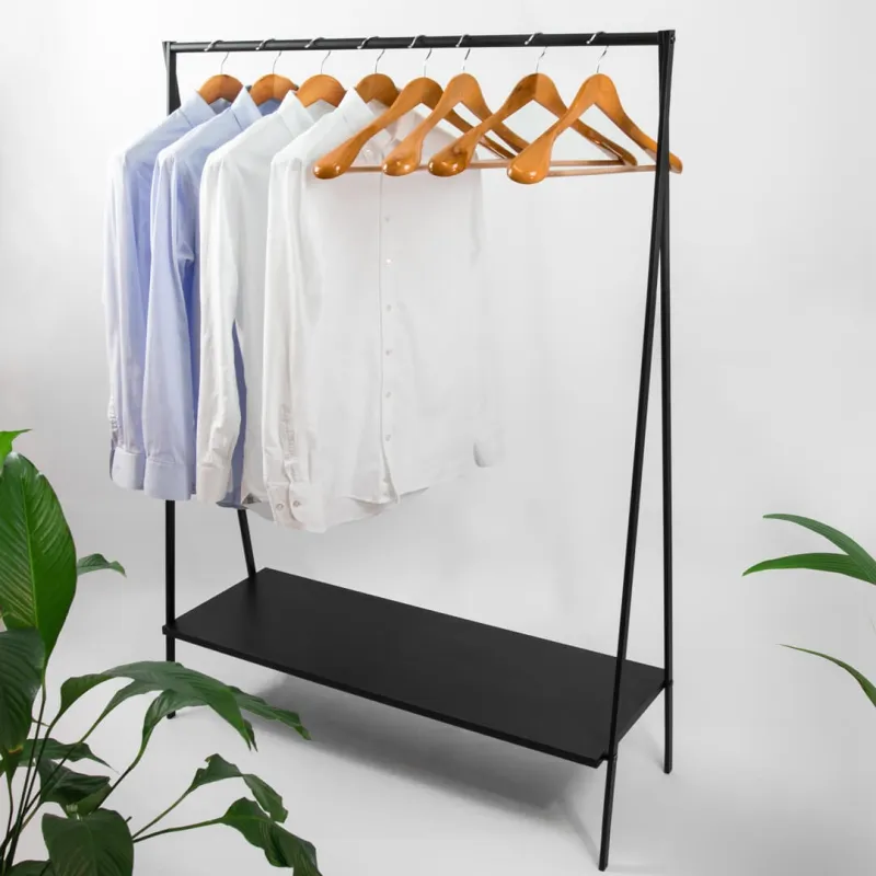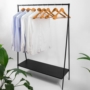 Nowoczesny stojak odzieżowy o minimalistycznej konstrukcji. Dopasowany do ekspozycji w wielu wnętrzach dzięki selekcji kolorystycznej stelaży (złoty, czarny lub biały) oraz półek ( 6 kolorów do wyboru).