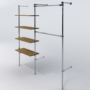 Wieszak przyścienny, wykonany z rury stalowej o średnicy 25mm oraz elementów łączących. Wszystkie elementy stalowe wykończone w chromie. Półki z płyty meblowej o gr. 18mm, obrzeże PCV.