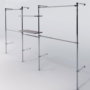 Kolejną zaletą systemu rurowo-kulowego jest możliwość wykonania zabudów wolnostojących. Nie zawsze istnieje możliwość zamocowania wieszaków do ścian, np. gdy umowa najmu lokalu wyklucza taką ewentualność. System rurowo-kulowy jako jedyny pozwala na budowanie wolno-stojących i przede wszystkim tanich zabudów. Jeśli wspomnimy jeszcze, że przestrzenie między nogami systemu można wypełniać płytą, to okazuje się, że taka wolnostojąca zabudowa staje się również ścianką. W ten sposób z jednego pomieszczenia można wydzielić część sprzedażową, magazynową i zaplecze, a co najważniejsze można to zrobić bardzo szybko (wystarczy kilka godzin), bez użycia drogiego sprzętu (potrzebny jest jedynie klucz imbusowy) i co najważniejsze niskim kosztem.
