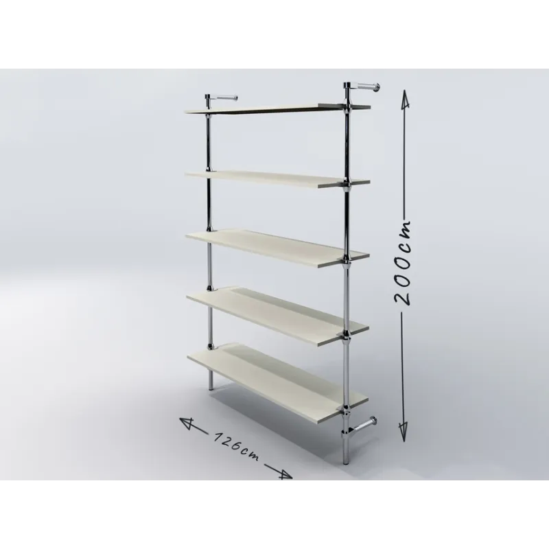 Regał przyścienny z pięcioma półkami, z regulacją poziomu, konstrukcja chromowana.