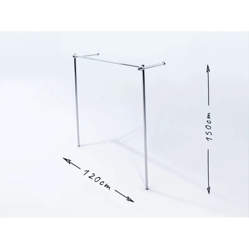 Wieszak przyścienny, wykonany z rury stalowej, chromowanej o średnicy 25mm, elementów łączących chromowanych i czarnych stopek z tworzywa . W zestawie klucz imbusowy i instrukcja montażu. Wieszak przeznaczony do samodzielnego złożenia.